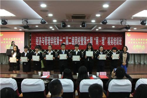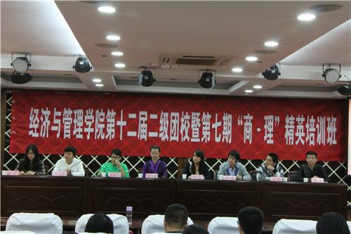 10月19-20日,为加强学院基层班团组织建设,提高青年团员思想素养和综合能力,培养政治素养过硬、综合素质较强、创新意识突出的优秀经管学生干部,72886必赢欢迎光临第十二期二级团校暨第七期“商·理”精英培训班在72886必赢欢迎光临报告厅开办,主讲老师分别为72886必赢欢迎光临党委副书记许静、校团委副书记徐川、王霄,关工委主任丁荣茂,中国九型人格学院导师裴宇晶,学校学生会、科协、社团联合会等八大学生组织主席,西藏支教返校学生李佳兴、刘晓倜,经管低年级学生干部全员参与。