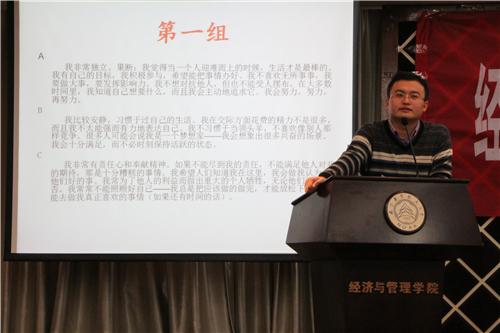 授课中,丁荣茂老师深入浅出的跟学员讲述了中国梦的内涵,南航几代人为实现高水平研究型大学梦想所作的奋斗,激励经管学子“仰望星空,脚踏实地”;裴宇晶老师激情慷慨的给学员们分析人的九种性格,教会学员明白自己个性、接纳自己的短处、活出自己的长处,懂得如何与不同的人交往沟通及融洽相处,与别人建立更和谐的关系;徐川老师则向学员介绍了从古至今的中国传统文化,幽默风趣的语言一次次赢得学员们的掌声;学校八大学生组织主席们则从团干实务的角度向学员传经送宝,分享自己奋斗历程与心路;72886必赢欢迎光临优秀研究生代表李佳兴和刘晓倜与大家分享了她们在援藏支教活动中的感受与体验,无论是西藏的教学教务工作,还是“三下乡”社会福利义工活动,她们的无私和热情让学员们在体悟温暖真情的同时更加深刻理解学生干部的责任与义务。
