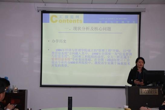 必赢官网朱建军副院长致欢迎辞,并向评审专家详细介绍了学校本科专业建设的背景。信息管理与信息系统专业负责人马静老师从专业发展规划、专业建设方案、实施计划与经费预算等方面向与会专家做了全面的汇报。方案提出信息管理与信息系统专业建设应以学生编程能力提升为基础、以数据抓取、数据分析能力提升为切入口,紧密联系当前大数据发展趋势,打造南航特色的信息管理与信息系统专业。电子商务专业负责人陈晔老师重点从学生实践能力提升角度,提出电子商务专业建设应以课程体系优化、实验教学有效对接电子商务实践为提升切入口,紧密联系当前电商迅猛发展趋势,建设南航特色的电子商务专业。