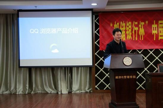 全国大学生网络商务创新应用大赛自2007年举办以来,已成功举办了六届,经管学子在历届赛事中屡创佳绩。宣讲会上,周德群院长对大赛组委会表示热烈的欢迎与感谢,并鼓励同学踊跃参与比赛。大赛组委会刘芳主任向现场同学介绍了历届大赛成果与本届大赛亮点,她启示同学们要想在创新的商业模式日新月异的今天取得商战的胜利,拥有互联网思维,必须做到跨界、融合、现实与创新。中国邮政储蓄银行江苏省分行彭作刚书记致词,鼓励大家积极选报邮储课题,并由企业教官王建从银行历史、电子商务系统等方面一一介绍,让师生对邮储银行有了更深刻的了解。腾讯江苏片区市场推广经理张学罗以腾讯QQ浏览器为例介绍从互联网行业品质与服务的重要性并与参赛同学交流了腾讯产品的经验。在互动问答环节中,同学们积极参与,各位嘉宾耐心解答,宣讲会在掌声中结束。