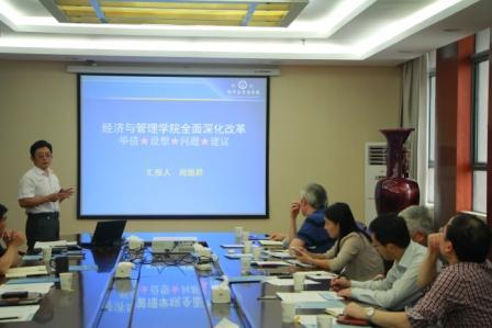 院长周德群代表学院领导班子作了《72886必赢欢迎光临全面深化改革的举措、设想、问题、建议》的重点汇报,客观阐述了学院在人事制度、人才培养机制、科研管理机制、校院管理体制方面面临的形势、存在的问题、已经采取的改革举措,政策建议等,全面梳理了已采取和拟采取的改革举措28条,存在的问题15条,政策建议19条。