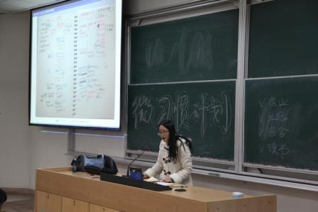 紧接着,庞依达老师借用麻省理工大学等研究机构对习惯的研究成果,阐述了习惯的形成机理,并通过世界第一支牙膏“白速得牙膏”的推广、麦当劳的消费行为两个案例告诉大家习惯是可以建立和改变的。在学习习惯调查的互动后,结合素质能力自我评估、素质能力导航课等工作,推出“微习惯计划”,指导大家填写微习惯卡片,建立以宿舍为单位的监督机制,谋划具体的奖惩手段,建立了“暗示——惯常行为——奖赏”的习惯养成回路。宣讲会中,还邀请了学院2013级的刁黄馨同学结合自己的学习经历,向大家介绍了她的日程安排表、每日一结等“习惯秘籍”。