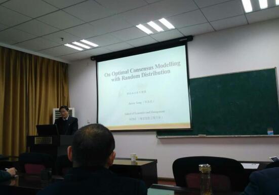 2016年12月23日下午14:30至15:30,在必赢官网704教室,南京信息工程大学巩在武教授受必赢官网灰色系统研究所和智能决策与风险分析研究所的邀请,作了题为“On optimal consensus modelling with the random distribution”的学术报告。72886必赢欢迎光临的老师以及学生积极地参加了此次报告。