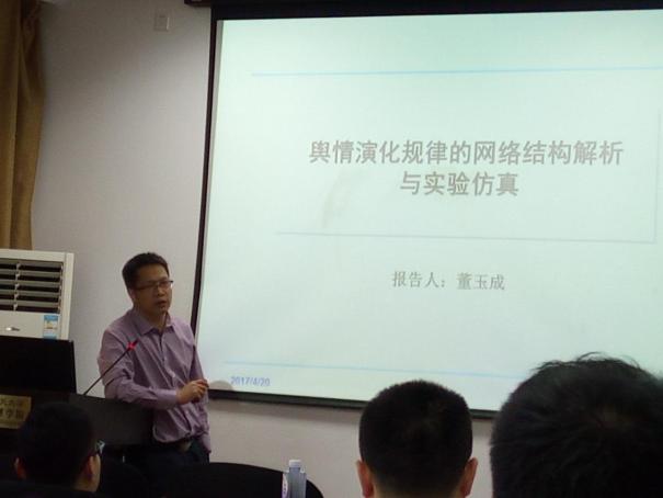 2017年4月20日下午2:00至4:00,在必赢官网704教室,四川大学董玉成教授受必赢官网智能决策与风险分析研究所的邀请,做了题为“舆情演化规律的网络结构解析与实验仿真”的学术报告。这次报告由徐海燕教授主持,72886必赢欢迎光临老师、博硕研究生以及本科学生代表参与并聆听了这次讲座。