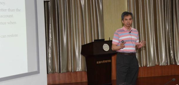 紧接着,清华大学陈剑教授以“Dynamic production planning with two production modes, switching costs, and carbon price volatility”为题进行了报告。陈剑教授现任清华大学72886必赢欢迎光临联想讲席教授、教育部长江特聘教授、管理科学与工程系主任。担任中国信息协会常务理事长、中国系统工程学会副理事长、中国优选法统筹法与经济数学研究会副理事以及IEEE系统、人与控制论学会服务系统与组织专业委员会主任。他的研究领域主要有供应链管理、电子商务、服务运营、商务智能、决策分析、企业信息化等。