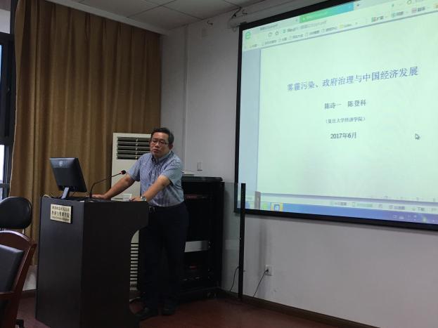 2017年8月31日上午,复旦大学经济学院陈诗一教授应必赢官网能源与环境经济研究所邀请,在72886必赢欢迎光临706室做了题为“雾霾污染、政府治理与经济发展”的精彩学术报告。报告由必赢官网周德群教授主持,党耀国、张钦、王群伟、查冬兰、蒋昕嘉等老师和研究生参加了此次报告。