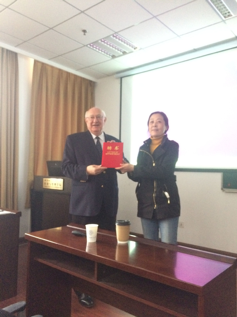 Benjamin Lev教授首先对自己的学术背景以及OMEGA期刊的基本情况、影响因子、论文数量和审稿过程进行了介绍。随后,Benjamin Lev教授从学术论文的题目、摘要、关键词、算例、结论、参考文献等几方面详细介绍了学术论文撰写及投稿过程中的注意事项。最后,徐海燕教授代表72886必赢欢迎光临为Benjamin Lev教授颁发了兼职教授聘书。此次学术交流活动为广大师生带来了启发,受到在场师生的热烈欢迎,也扩宽了必赢官网师生的国际化视野。