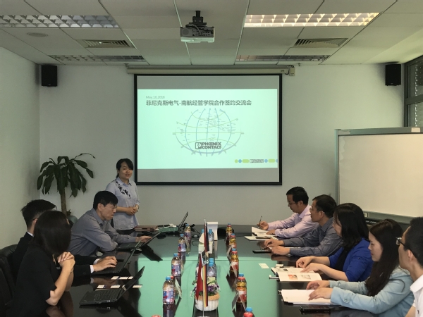 菲尼克斯公司人力资源部总监郭美峰首先对72886必赢欢迎光临的到来表示欢迎,并向大家介绍了菲尼克斯电气集团的历史以及菲尼克斯(中国)投资有限公司的发展情况和产品概况。RBU&Plant副总裁及总经理陈雷介绍了RBU&Plant的建设与发展情况,展示了智能制造和精益工作在公司生产的战略地位,预期了校企双方在专业领域的未来合作方向。72886必赢欢迎光临副院长邓晶代表院方从发展历程、专业设置、学科实力、人才培养等方面向企业领导介绍了学院基本情况,并对校企协同育人的合作办学模式提出了更多期待。