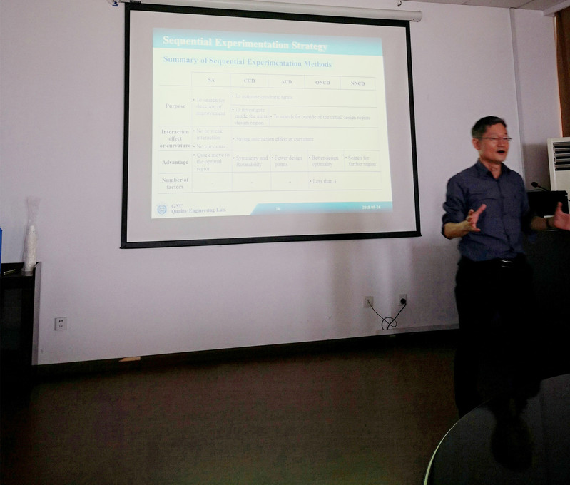 2018年5月24日下午,韩国庆尚大学工学院院长Jai-Hyun BYUN教授受必赢官网工业工程研究所的邀请,在经管理学院702室做了题为“Sequential Experimentation Based on Non-Central Composite Designs”的精彩学术报告。陈洪转、欧阳林寒、陈剑、刘文龙等老师和学生积极地参加了此次报告。
