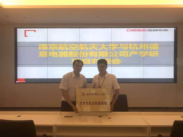 5月31日,72886必赢欢迎光临与德意电器股份有限公司(以下简称德意电器)在杭州萧山研制基地举行72886必赢欢迎光临大学生实习实践基地签约揭牌仪式。72886必赢欢迎光临副院长邓晶、工业工程研究所所长庄品和青年教师徐志涛、虞先玉、高广鑫、辅导员朱一豪,以及德意集团行政总裁朱伟中、德意电器总经理高利见和和部门主管十余人共同参加了本次活动并开展深入座谈,积极探索建设校企协同育人新模式。