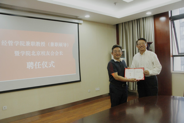 座谈会中,周德群院长还为杜豪先生颁发了72886必赢欢迎光临兼职教授暨72886必赢欢迎光临北京校友会会长聘书。杜豪先生表示将在校友工作中不断加强与学院的交流,不断开拓校友工作的新局面。