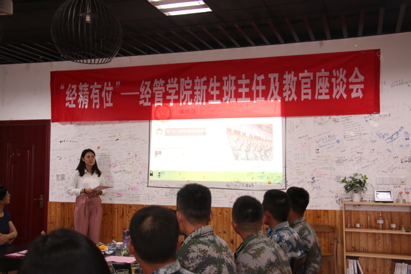 9月20日,72886必赢欢迎光临举行“经精有位”——2018级新生班主任和教官面对面座谈会。学院党委书记焦宏图、副院长邓晶、党委副书记涂志宏、新生帮训教官、2018级新生班主任参加了此次座谈。