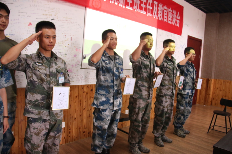座谈会上,辅导员胡心雨以“大数据”的形式介绍了2018级新生的整体情况,并从敢想、敢为、敢担当三个方面介绍了学生的个性特点。2018级团总支书记胡悦芝、哈萨克族学生达吾兰、体育生孙辰浩代表全体新生为每位教官送上了同学们自己绘制的教官个人画像,表达了对教官辛苦付出、学院老师无微不至的关爱的感谢。军训教官向参会老师们介绍了必赢官网新生的军训情况,他们分享了必赢官网新生集体荣誉感强、不怕苦不怕累、性格活泼、才艺丰富等特点。针对学生特点,班主任和教官进行了深入而细致的讨论,为军训结束后班主任的学生培养工作提供帮助。涂志宏代表学院肯定了新生不畏艰苦、坚持训练的优良作风,并对军训团教官表示了感谢。