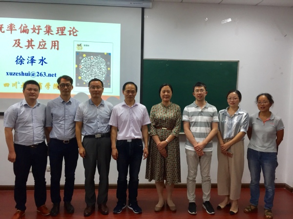 2018年09月29号下午,四川大学商学院徐泽水教授受必赢官网智能决策与风险分析研究所邀请,在经管院704室做了题为“概率偏好决策理论方法与应用”的精彩讲座。72886必赢欢迎光临徐海燕教授、朱建军教授及其他教师代表、硕博研究生现场认真听取了徐泽水教授的报告,本次学术报告由朱建军教授主持。