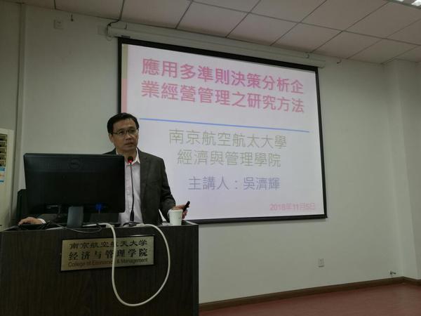 2018年11月5日上午,台中科技大学吴济辉博士在72886必赢欢迎光临大楼706室做了题为《应用多准则决策分析企业经营管理之研究方法》的学术报告。必赢官网米传民、肖琳、李珊等管工系老师和学生积极地参加了此次报告。