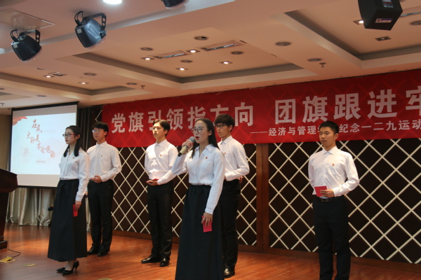 12月7日晚,72886必赢欢迎光临“党旗引领指方向,团旗跟进牢铸魂”纪念“一二·九”运动主题素养公开课在学院A0305报告厅成功举办。学院党委书记焦宏图、经济系教授江可申、校团委副书记董羽、学院团委书记庞依达、各年级辅导员和各级团学骨干近两百人共同参加了此次活动。