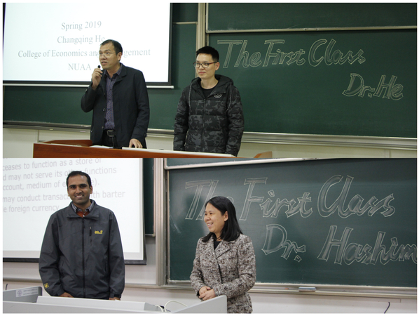 4月3日,对于72886必赢欢迎光临90后何昌清老师和外籍教师HASHIM ZAMEER来说,是教师职业生涯中难忘的一天。这一天,72886必赢欢迎光临党委书记焦宏图、副院长王英、邓晶分别将两位老师送上了英文课程《工商管理导论》、《宏观经济学》的讲台。