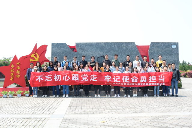 4月27日,72886必赢欢迎光临开展“不忘初心跟党走,牢记使命勇担当”主题二级党校培训课程暨青马工程团日活动,70余名党员发展对象、青马工程培训班学员前往南航天目湖校区、新四军江南指挥部纪念馆参观学习,了解学校发展、追忆革命先烈,辅导员康冲、朱一豪一同参加了本次活动。