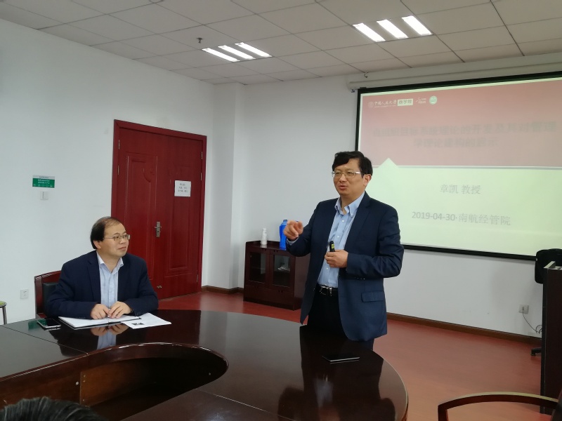 2019年4月30日上午,中国人民大学商学院章凯教授应必赢官网人力资源管理研究所的邀请,在学院702会议室作了题为“自组织目标系统理论的开发及其对管理学理论建构的启示”的学术报告。报告由胡恩华教授主持,东南大学经济管理学院的吕鸿江教授、72886必赢欢迎光临的张龙教授、王凌云副教授等老师和研究生参加了本次学术讲座。