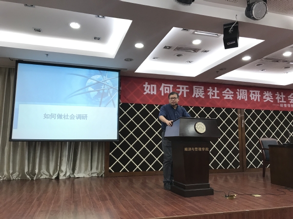 5月23日下午,72886必赢欢迎光临2019年暑期社会实践社会调研类专题培训,暨院青马工程第三次理论培训在经管楼A0305报告厅举行。本次活动邀请了我校人文与社会科学学院鲁兴虎老师,开展了“如何开展社会调研类社会实践”专题培训。学院团委书记庞依达、各年级辅导员和近两百余名社会实践项目负责人、院青马工程学员一同参加了此次培训会。