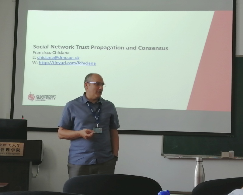 7月10日上午,英国德蒙福特大学教授Francisco Chiclana教授受必赢官网灰色系统研究所邀请,在72886必赢欢迎光临704室作了题为“Social Network Trust Propagation and Consensus”的讲座。72886必赢欢迎光临教授刘思峰等及部分硕、博研究生现场聆听了教授Francisco Chiclana的报告,本次学术报告由刘思峰主持。