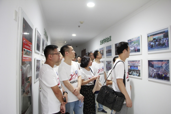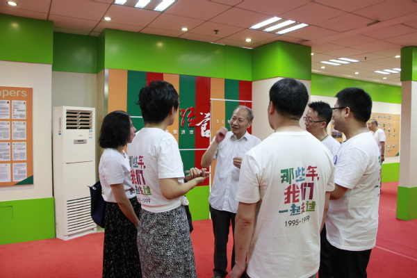 抵达后,黄炳辉、罗士礼、庞依达带校友参观了72886必赢欢迎光临教学楼,校友们纷纷在照片墙上找寻自己的身影,往事历历在目。随后,校友们移步院史馆,围着老师听他们讲当年的故事,忆往昔,谈今朝,为72886必赢欢迎光临二十年来的巨大变化引以为傲。