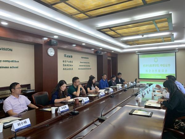 焦宏图对冯恩新一行的到来表示了热烈欢迎,并向其介绍了学院的历史发展、学术科研、学科设置、人才培养等基本情况。邓晶、朱建军分别围绕金融学科发展和实习实践基地建设向企业介绍了学院优势,重点推介了“项目式实习”的学生实习实践创新模式。
