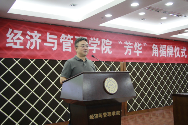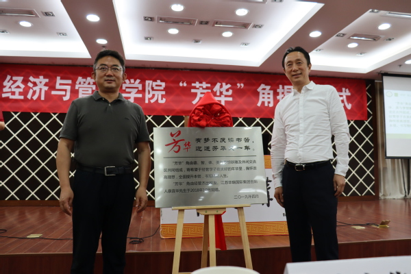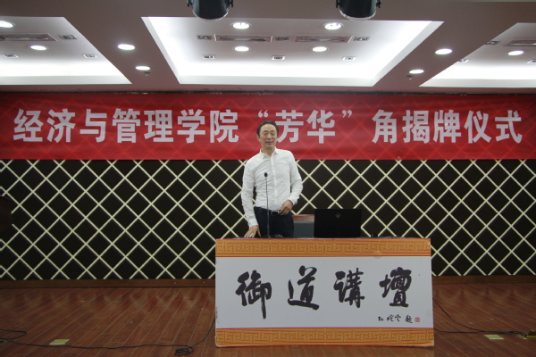 首先,康宜华和周德群共同为寓意 “鼓励学生胸怀崇高理想,珍惜当下芳华,书写精彩人生”的“芳华”角进行揭牌。他代表学院向以康总为代表的一批关心学院发展的校友们表示了衷心感谢以及热烈欢迎,他表示,同学们要秉承“尚德励学,筹策济世”的责任担当,汲取讲座中蕴含的人生智慧,立志成为像康总一样优秀的南航经管人。
