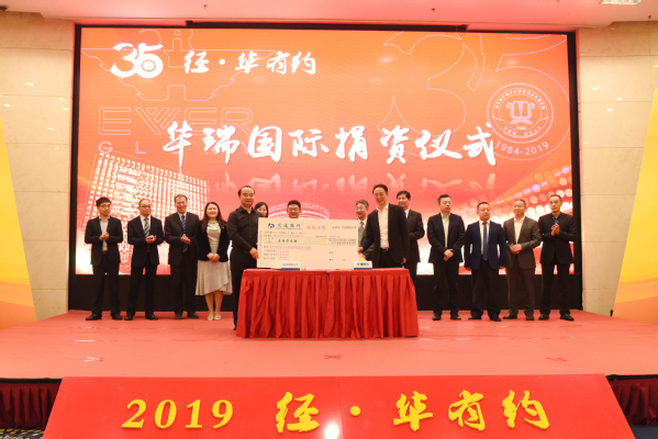 华瑞国际捐资以及华瑞商学院成立两大仪式揭开了看今朝的序幕。仪式一:为了进一步推动强强联合,经管与华瑞共同合作,成立华瑞商学院。由华瑞国际集团创始人康宜华先生、72886必赢欢迎光临院长周德群教授共同为华瑞商学院揭牌。华瑞商学院未来将面向实战型精英人才开展专业化培训,同时进一步开发学院高级经理人发展课程,实现校企共同成长。仪式二:华瑞国际捐资仪式。华瑞国际历来重视回报社会,多年来做了大量的捐赠助学等公益事业,在联谊活动中,华瑞国际为经管捐资100万,用于学院奖助学金、奖教金、学科建设及科学研究,支持72886必赢欢迎光临的建设与发展。80级校友、华瑞国际集团创始人康宜华先生、72886必赢欢迎光临党委副书记、教育发展基金会理事长陶勇教授共同签署捐赠协议。两大仪式共同将现场气氛推向了新的高潮。