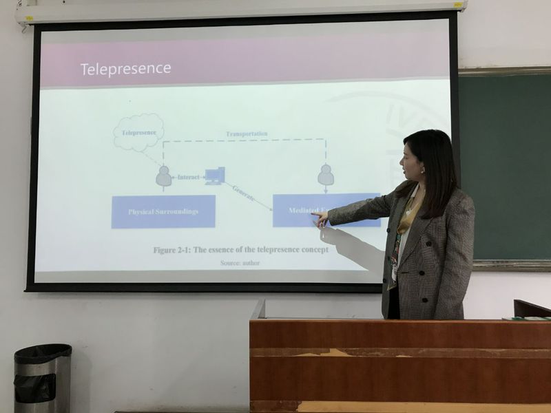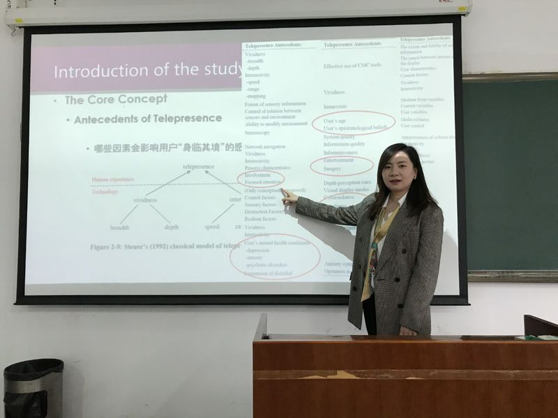 10月14日上午,南开大学商学院信息资源管理系讲师张丹老师应72886必赢欢迎光临信息管理与电子商务研究所邀请,在72886必赢欢迎光临704会议室作了题为“虚拟环境中用户‘身临其境’感觉的探索性研究”的精彩学术报告。报告由讲师肖琳主持,副教授宋连莲、讲师刘文龙等老师及部分硕士、博士研究生参加了本次学术讲座。
