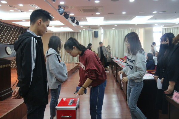 在大会选举环节,全体党员代表按照民主、公正、透明的原则,在经民主推荐产生的11名学生党总支委员候选人基础上进行了差额选举,投票产生了中共72886必赢欢迎光临第四届学生党总支委员会。最终涂志宏、刘小杨、康冲、田苑娜、朱一豪、胡心雨、徐国长、刘婷炜、曹智博当选新一届委员。