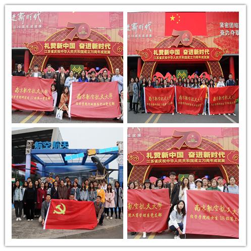 参观过程中,老师和同学们认真聆听讲解,仔细观看历史图片、短片视频、模型场景等,对中华人民共和国成立70年来取得的辉煌成果有了更为直观、全面、深刻的认识。大家一致赞叹祖国繁荣富强,江苏经济腾飞发展,表示此次展览振奋人心、深受鼓舞。教工党支部书记罗正军表示“展览办得非常好,一件件老物件、一组组老照片,都记录了江苏发展的步伐,唤起了我们心中的自豪感和继续投身江苏建设发展的使命感”,学生党员丁宇看到展览馆门口陈列着的飞行器模型,心中十分骄傲,他说“在中国高速发展的这些年里南航也在进步,能为国家的国防、航空事业进步做出贡献令我们非常自豪。”参加此次展览的师生党员们纷表示,将在今后的教学科研生活中,尽心尽职、发挥好新时代党员的先锋模范作用,为学校双一流建设作出自己的贡献。