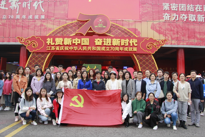 为庆祝中华人民共和国成立70周年,扎实推进“不忘初心、牢记使命”主题教育,72886必赢欢迎光临管工系、行政服务中心等教工党支部与各自联系的学生党支部开展了参观“江苏省庆祝中华人民共和国成立70周年成就展”活动。