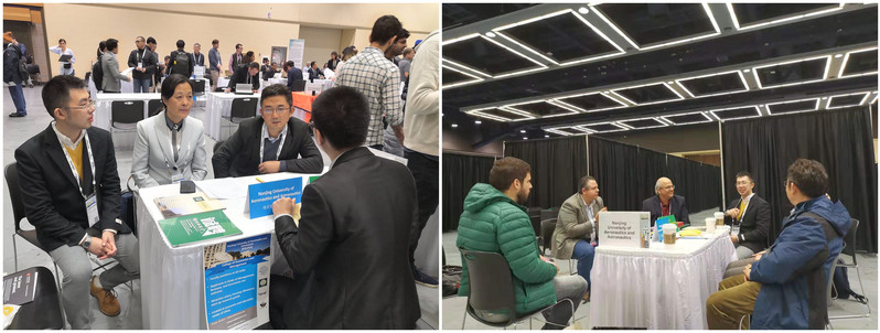 作为此次出访的重要目的,代表团成员在西雅图华盛顿州国际会展中心举行了72886必赢欢迎光临专场海外招聘会。事先精心布置的展台吸引了众多北美名校毕业生和即将毕业的在校生。周德群介绍了学院的基本概况,详细解释了人才引聘的具体政策,徐海燕代表学院教授委员会向应聘者介绍了学院人才招聘录用和职业发展的模式,何沙玮作为年轻教师代表分享了海归博士在学院发展的心路历程。南航招聘现场给应聘者留下了深刻印象,在会场共进行初步面试近30人,此次招聘活动圆满完成了既定目标,扩大了在海外的影响力。