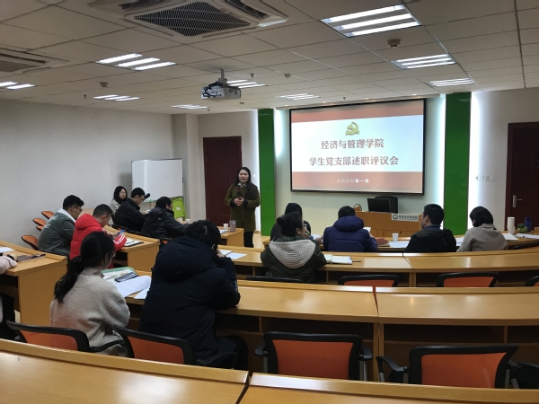 1月7日,72886必赢欢迎光临在学院党员活动室举行了2019年度学生党支部述职评议会,学院党委书记焦宏图、党委副书记涂志宏、党委委员邓晶、罗正军以及谢嗣胜、组织员袁颖、学生党总支成员以及学生党支部书记参加了活动。为深入学习贯彻落实习近平新时代中国特色社会主义思想和党的十九大精神,推动全面从严治党向基层延伸,学院结合各支部工作实际以及18年述职情况,组织了五位学生支部书记进行现场述职。