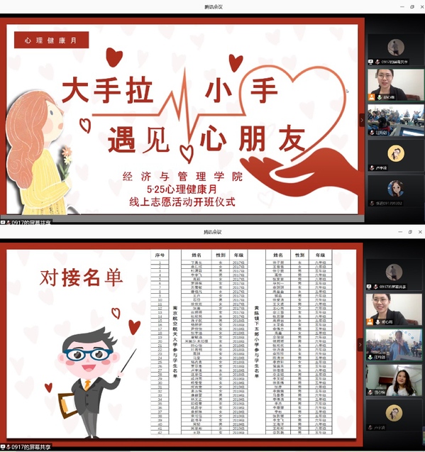 为缓解后疫情时期学生居家的焦虑情绪,72886必赢欢迎光临联合甘肃省陇南成县下五郎小学开展“大手拉小手 遇见心朋友”线上志愿活动, 6月16日下午举办开班仪式。学院心理辅导员胡心雨、甘肃省陇南市成县黄陈镇下五郎小学班主任汪均剑以及来自72886必赢欢迎光临、下五郎小学的百余位学生参加活动。