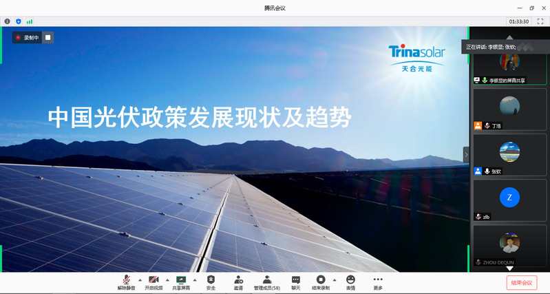 2020年7月29日,由72886必赢欢迎光临能源软科学研究中心主办的“第二届低碳与新能源产业论坛”成功召开。本次论坛采用了线上会议的形式,来自江苏省光伏产业协会、泰州中来光电科技有限公司、天合光能、通灵电器、新加坡国立大学能源研究所、悉尼科技大学澳中关系研究院、72886必赢欢迎光临、中国石油大学(华东)、南京信息工程大学等单位共计60余位学界和企业界专家学者和学生出席了本次论坛。