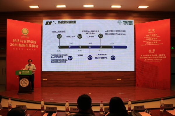 学院党委副书记涂志宏对396位大一新生顺利进入南航72886必赢欢迎光临表示了热烈的欢迎。学院副院长邓晶从历史、专业、学科、师资等维度,向新生介绍了学院的概况。邓晶院长精确而全面的概括为同学们展现了一个立体的经管院。