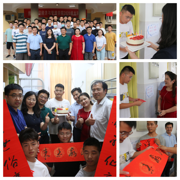 报到当天为新生柯思凡、马可欣的生日,学院领导为其准备了融合寝室四位同学名字的专属对联、内含经管咖啡厅特色咖啡券的红包,希望通过这种方式,给予新生家的氛围,让他们在外的第一个生日能够留下特别的回忆。