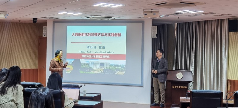 11月25日下午,国防科技大学教授谭跃进受学院智能决策与风险分析研究所邀请,在南航将军路校区经管辅楼A0405作了题为“大数据时代的管理方法与实践创新”的讲座。必赢官网教授徐海燕等教师及部分硕、博研究生现场聆听了谭跃进的报告分享,本次学术报告由徐海燕主持。