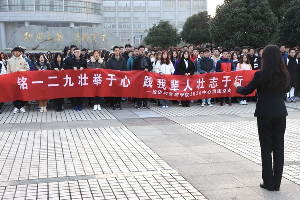 随后,2020级中心组团总支全体成员进行了“铭记•传承”一二•九主题诗朗诵。“被热血和烈火炽烤的国土,已失去母性的温柔。”由沉痛到激昂,全体同学仿佛又置身于一二•九的波澜壮阔之中,再体会青年人的责任与担当。