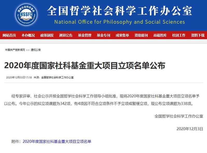 国家社科基金重大项目是现阶段我国哲学社会科学领域层次最高、资助力度最大、权威性最强的国家级政府基金资助项目,主要支持关系党和国家事业发展全局、对推动经济社会发展有重要参考价值的研究课题。