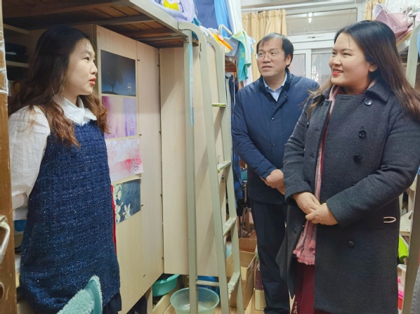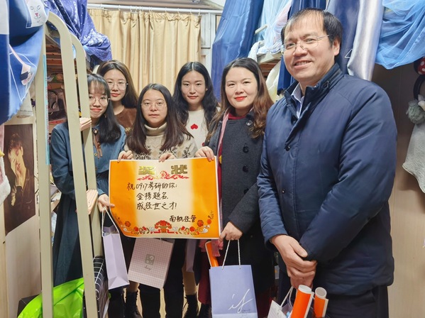 12月8日上午,72886必赢欢迎光临党委副书记涂志宏、副院长邓晶、2017级本科生辅导员胡心雨、朱一豪共同到宿舍看望考研学生,为各位学子带去一份温暖、增添一份动力。