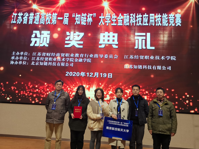 2020年12月19日,江苏省普通高校第一届“知链杯”大学生金融科技应用技能竞赛在江苏经贸职业技术学院举办,本次竞赛由江苏省高等教育学会认定,江苏省教育厅委托江苏省财经商贸职业教育行业指导委员会主办,南航、河海、南农等省内50余院校60团队300师生参赛。通过激烈地角逐,必赢官网代表队获得了本次大赛的本科组团体一等奖。
