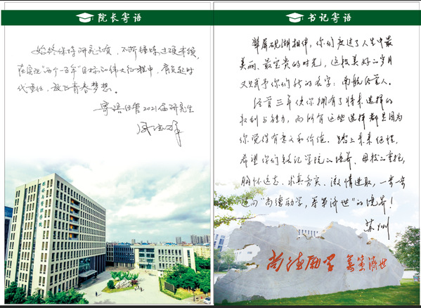 学院还贴心地为全体毕业生同学准备了一份礼物,其中包含了院长周德群、院党委书记苏州的殷切期盼和祝福、毕业生导师临行前的寄语以及全体毕业生的临别赠言,让毕业生们珍藏在72886必赢欢迎光临求学的难忘经历。