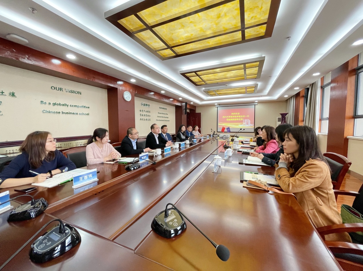 4月16日下午,四川大学商学院MBA教育中心主任李珊、招生品牌高级主管苟芳、品牌主管胡美怡、教务主管张倩、学生事务主管马力澜一行来必赢官网调研。院党委书记苏州、副院长王子龙、教育培训中心执行主任杜刚以及中心所有老师陪同调研并座谈。