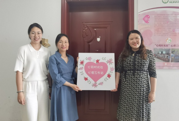 最后,胡心雨带领大家参观了“心苑时光社”心理工作站,72886必赢欢迎光临划拨506办公室作为心理健康室,为心理健康教育提供场地支持,开设“心灵图书&解压角”,摆放有关心理减压、人际交往、导学关系等方面的心理书籍和减压工具,旨在为学生创造一个舒缓心情的绝佳场所。涂志宏、陈瑜共同为心理工作站以及心灵解压角挂牌。