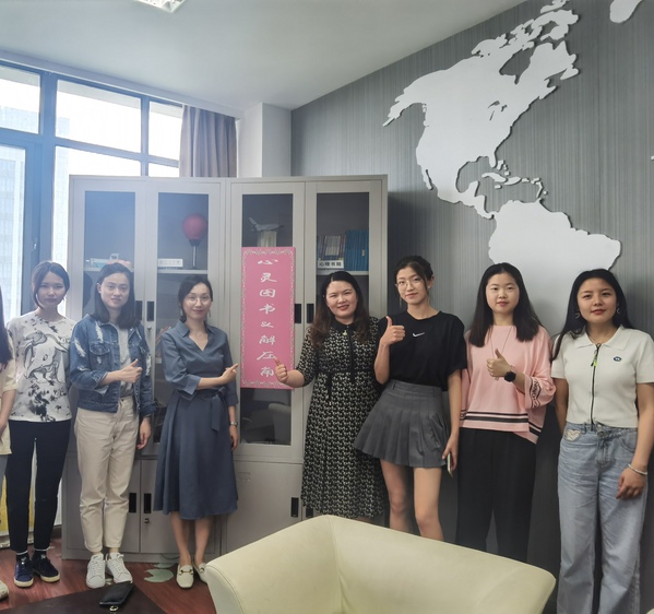 活动伊始,涂志宏强调72886必赢欢迎光临历来高度重视学生心理健康教育工作,前期通过学生交流会等渠道了解到同学们对于心理辅导的需求和期望,在5•25这样特殊的日子,通过建设“心灵图书&解压角”等一批平台载体,进一步构建教育教学、实践活动、咨询服务、预防干预的“四位一体”心理健康教育格局,在关心呵护和暖心帮扶中精准开展心理健康教育。