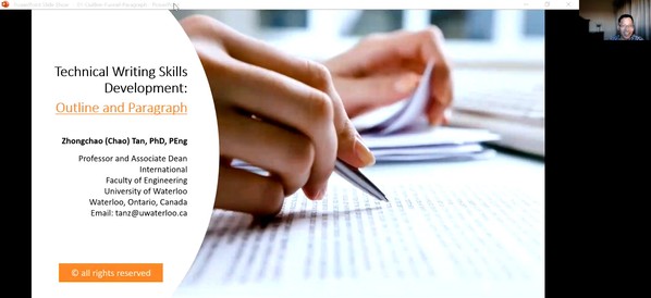 5月11日-6月1日每周二上午,加拿大滑铁卢大学教授Zhongchao Tan受学院智能决策与风险分析研究所邀请,在腾讯会议开设了“Academic Writing for Engineering Publication: Guide for Non-native English Speakers”短期课程。必赢官网教授徐海燕等教师及众多硕、博研究生线上参加了Zhongchao Tan讲授的短期课程,本次短期课程由徐海燕主持。