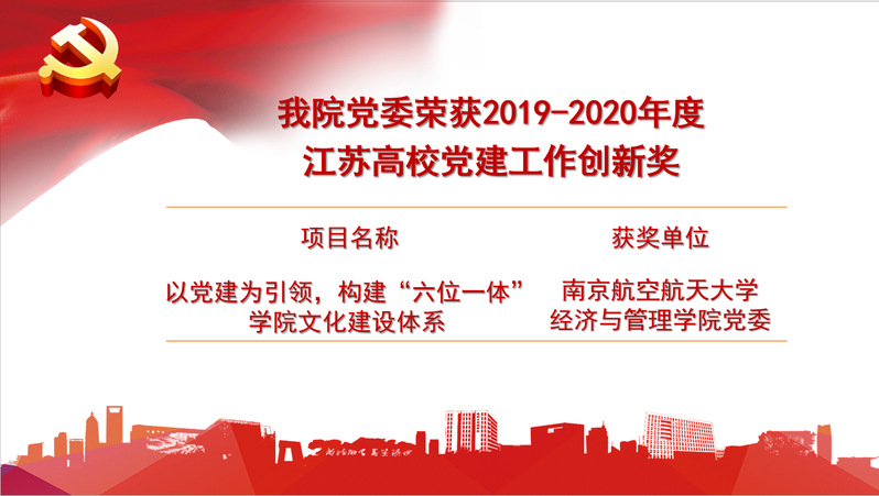经学院申报、学校初评推荐(全校共推荐2项)、江苏省委教育工委评选,必赢官网党委“以党建为引领,构建‘六位一体’学院文化建设体系”荣获2019-2020年度江苏高校党建工作创新奖。学院党委将再接再厉,不断创新基层党建工作理念与实践,努力提升党建工作质量水平,推动学院在新发展阶段的高质量发展。